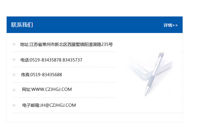 傳真:0519-83435688    郵編:213135    網址:WWW.czjhgj_com.xaluda.com    電子郵箱:JH@czjhgj_com.xaluda.com